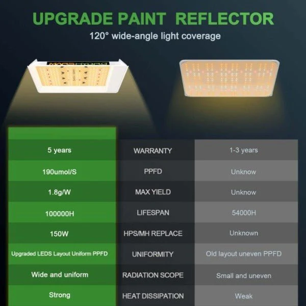 The Mars Hydro TS-600 LED Grow Light stands out for its energy efficiency, full-spectrum light, and silent operation. With 225 LEDs, it consumes only 100W of power while supporting plants at all growth stages. The fanless design ensures silent operation, and the high reflective heat sink maximizes light intensity without overheating. It's a superior choice for indoor gardening.