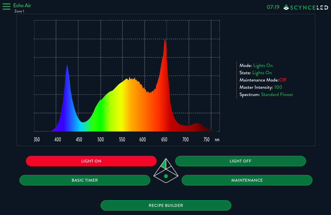 The Echo Display can handle up to 300 wired Scynce LED fixtures and 200 Thread Mesh wireless Scynce LED fixtures at the same time. You can divide these fixtures into 20 different lighting zones, each of which can be controlled separately.
