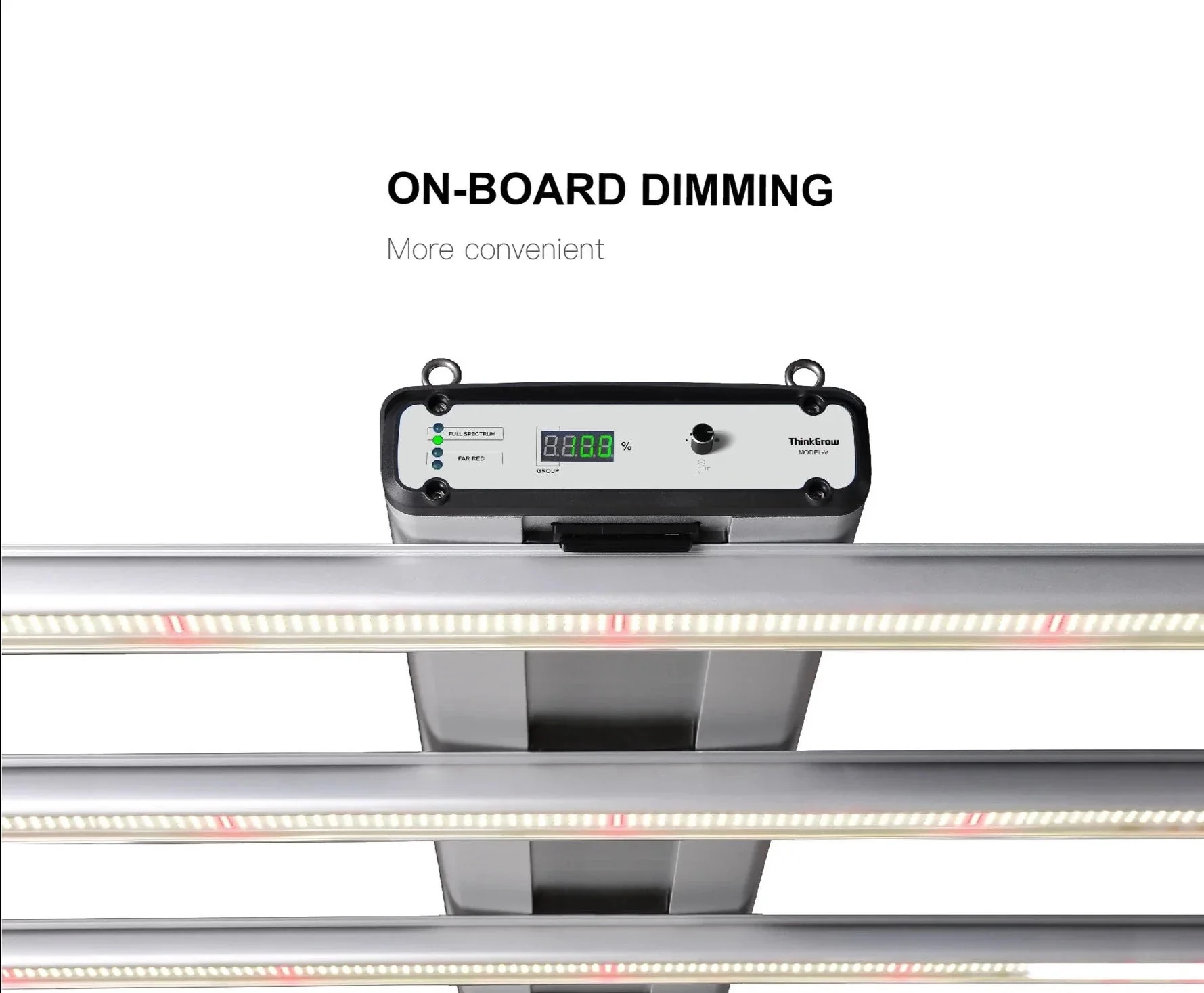 The ThinkGrow Model-V 350W Horticulture LED Grow Light is naturally compatible with Hydro-X controllers from TrolMaster, allowing for external controllability.